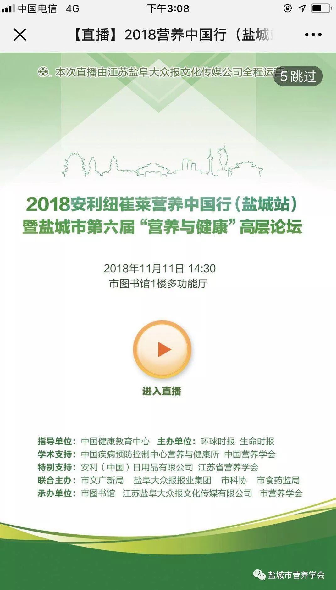积极开展自然科学学术月活动,提升学会服务水平。为普及公共营养知识,进一步推介和宣传盐城营养行业专家,扩大营养专家的影响,更好地发挥营养学会智囊作用,在自然科学学术月活动期间,一是举办盐城市第六届“营养与健康”高层论坛。2018营养中国行(盐城站)暨盐城市第六届“营养与健康”高层论坛干货满满、精彩纷呈,600多名观众现场聆听专家讲座,6万多名网友在线观看盐阜大众报的现场直播。此次活动由中国健康教育中心指导,《环球时报》《生命时报》主办,中国疾病预防控制中心营养与健康所、中国营养学会提供学术支持,安利(中国)日用品公司、省营养学会特别支持,市文广新局、盐阜大众报报业集团、市科协、市食药监局联合主办,市图书馆、盐阜大众报文化传媒公司、市营养学会承办,市文化广电新闻出版局党委书记、局长季德荣,盐阜大众报报业集团党委书记、社长朱志和,市食品药品监管局党组书记、局长高定,市科协主席徐瀚文、市科协副主席高福华,市卫生监督所所长、市食品安全与营养专业委员会主任委员严东明,市疾病预防控制中心主任沈进进,市图书馆馆长、市营养学会理事长戈建虎,市消协秘书长徐文龙,安利(中国)南通城市群负责人陈彦池,市总商会副会长、市文化产业商会会长沈凯斌等来宾出席了本次活动。两位主讲专家丁钢强、左小霞当天下午还在图书馆三楼会议室举行了“成长与健康”——盐城晚报小记者与营养健康大咖见面会,30名晚报小记者与营养健康专家采访互动,尽情畅谈青少年成长与健康话题。